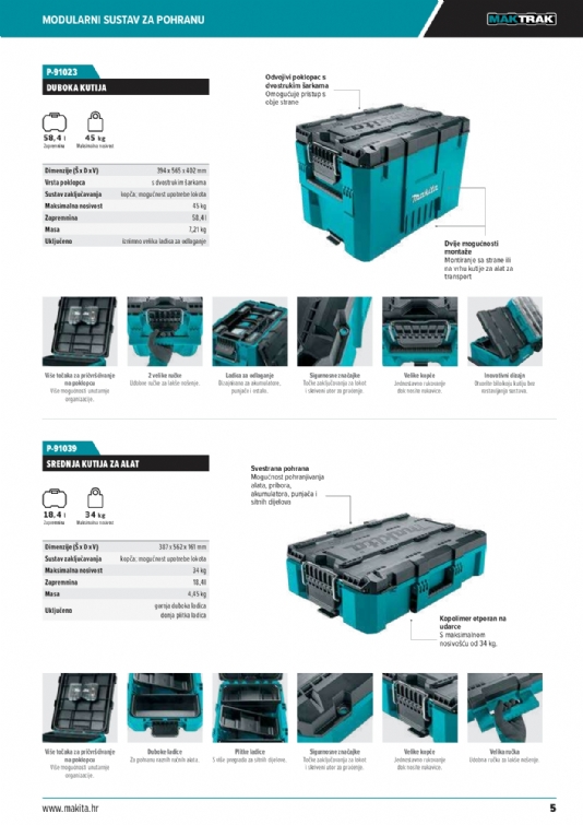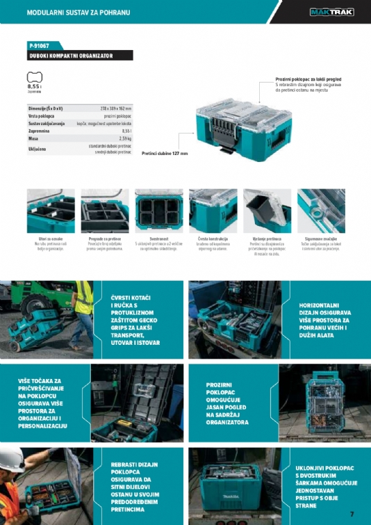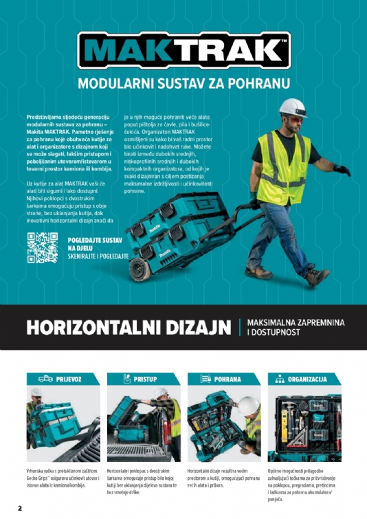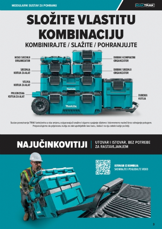 Predstavljamo sljedeću generaciju modularnih sustava za pohranu – Makita MAKTRAK. Pametno rješenje za pohranu koje obuhvaća kutije za alat i organizatore s dizajnom koji se može slagati, lakšim pristupom i poboljšanim utovarom/istovarom u tovarni prostor kamiona ili kombija.